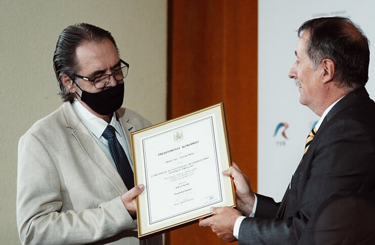 Consilierul Prezidențial pe probleme de Cultură, Sergiu Nistor, a înmânat Directorului Executiv al Festivalului Internațional George Enescu Diploma de Înalt Patronaj, semnată de către Președintele României, Klaus Iohannis. Sergiu Nistor a precizat că: „Enescu este alături de noi în clipele cele mai frumoase, dar și în clipele cele mai grele. Cei care au prins acele vremuri [ comunismul – n.n.] știu cum se deschidea radoul atunci când îl puneam pe Europa Liberă. Acordurile Rapsodiei lui Enescu ne-au dat speranța pentru o lume mai bună”.